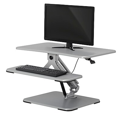 Shop staples canada for a wide selection of office supplies laptops printers computer desks more. Tygerclaw black sit and stand adjustable desk riser. An easy way to turn a regular desk into a sit stand desk. Bestar viva l shape height adjustable desk.